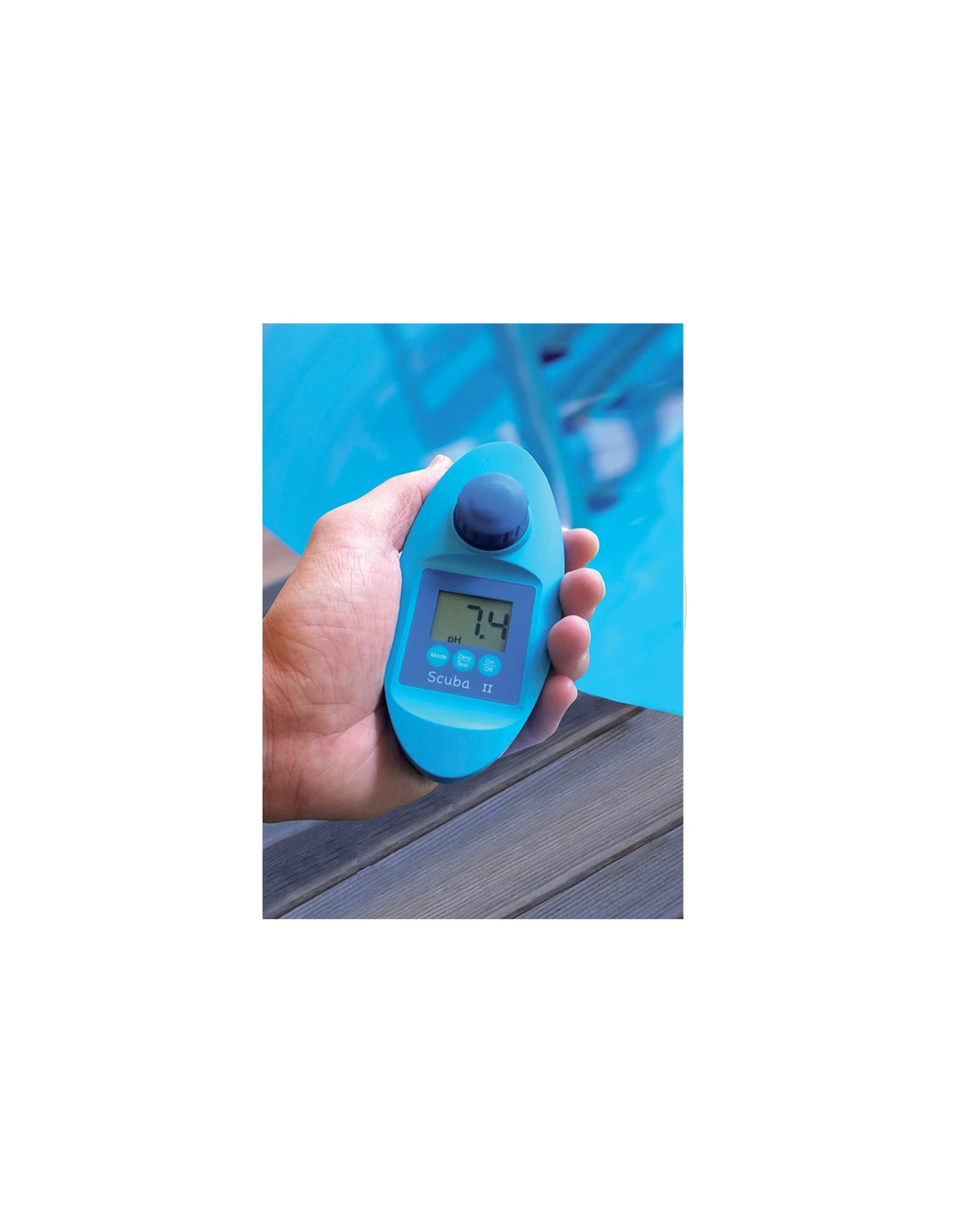 Son boîtier est étanche à l’eau. L’analyseur Scuba 2 fonctionne de manière intuitive grâce à sa chambre de mesure intégrée. Une fois l’échantillon de votre eau prélevé dans votre bassin, vous obtiendrez des résultats rapides qui vous permettront de contrôler et réajuster, si besoin, l’équilibre de l’eau de votre piscine.
