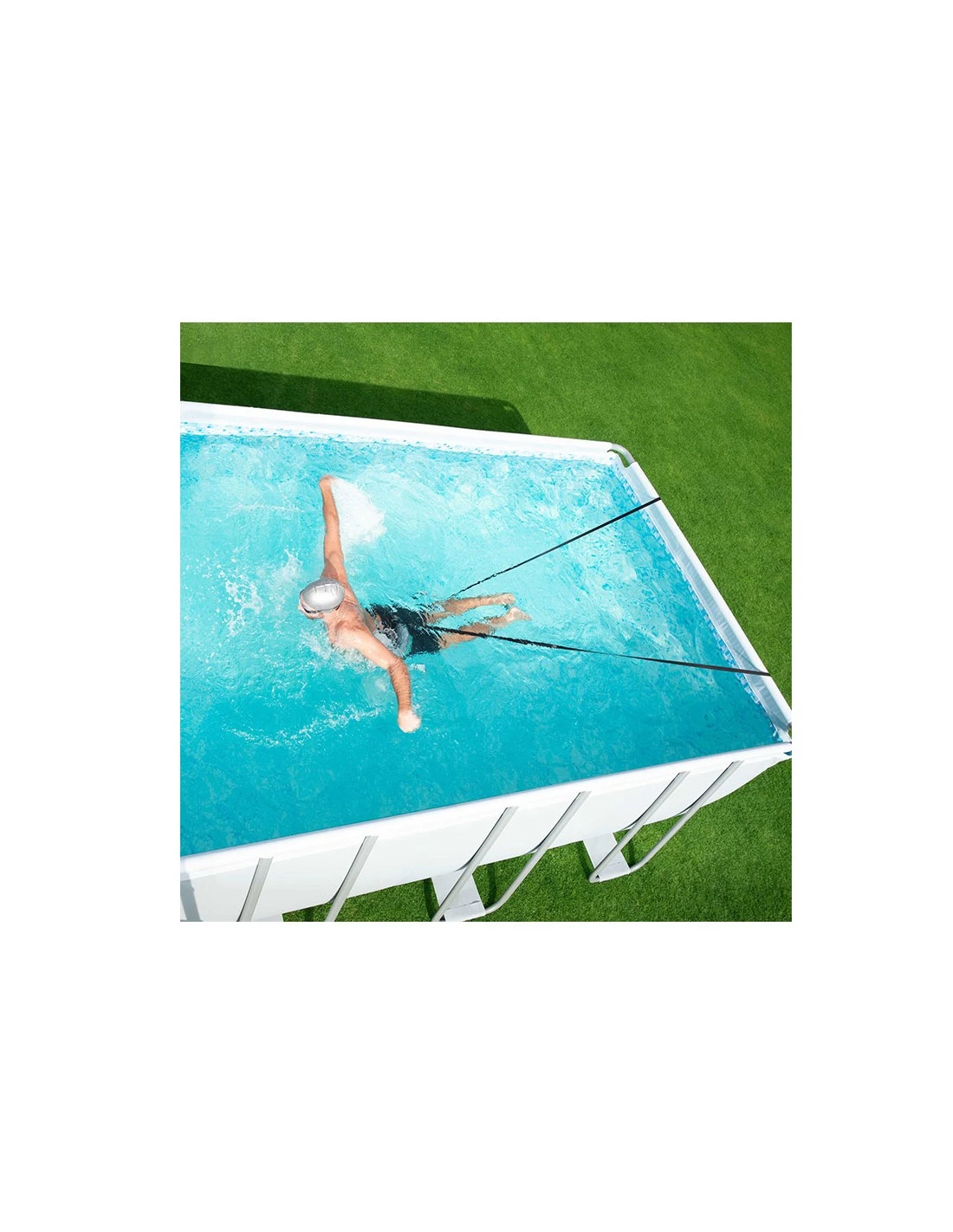 Vous cherchez un moyen de pouvoir nager dans votre piscine hors-sol? La société Bestway à trouvé la solution avec son élastique de nage Hydro-Pro !