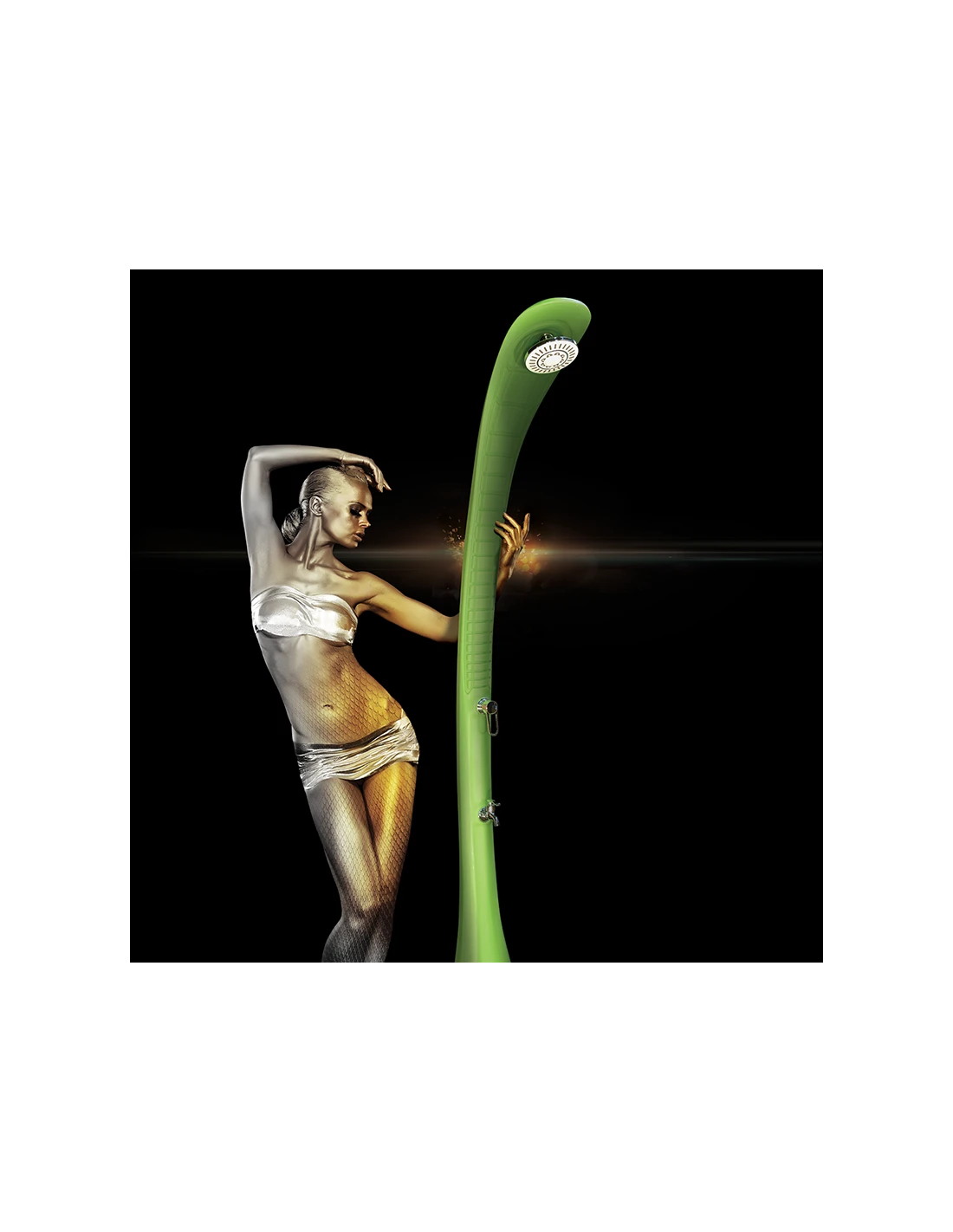 Disponible en cinq coloris diffĂ©rents, la douche solaire se dresse telle une Ĺ“uvre d’art dans votre jardin. Son allure, rappelant les courbes d’un serpent, s’intĂ©grera parfaitement dans le paysage.