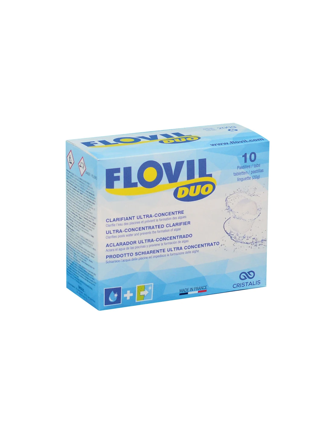 Les pastilles clarifiantes Flovil Duo optimisent le traitement de l’eau de piscine en favorisant l’élimination des microparticules et des algues en suspension grâce au principe physico-chimique de la floculation.
