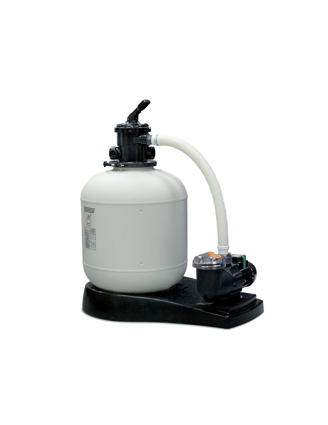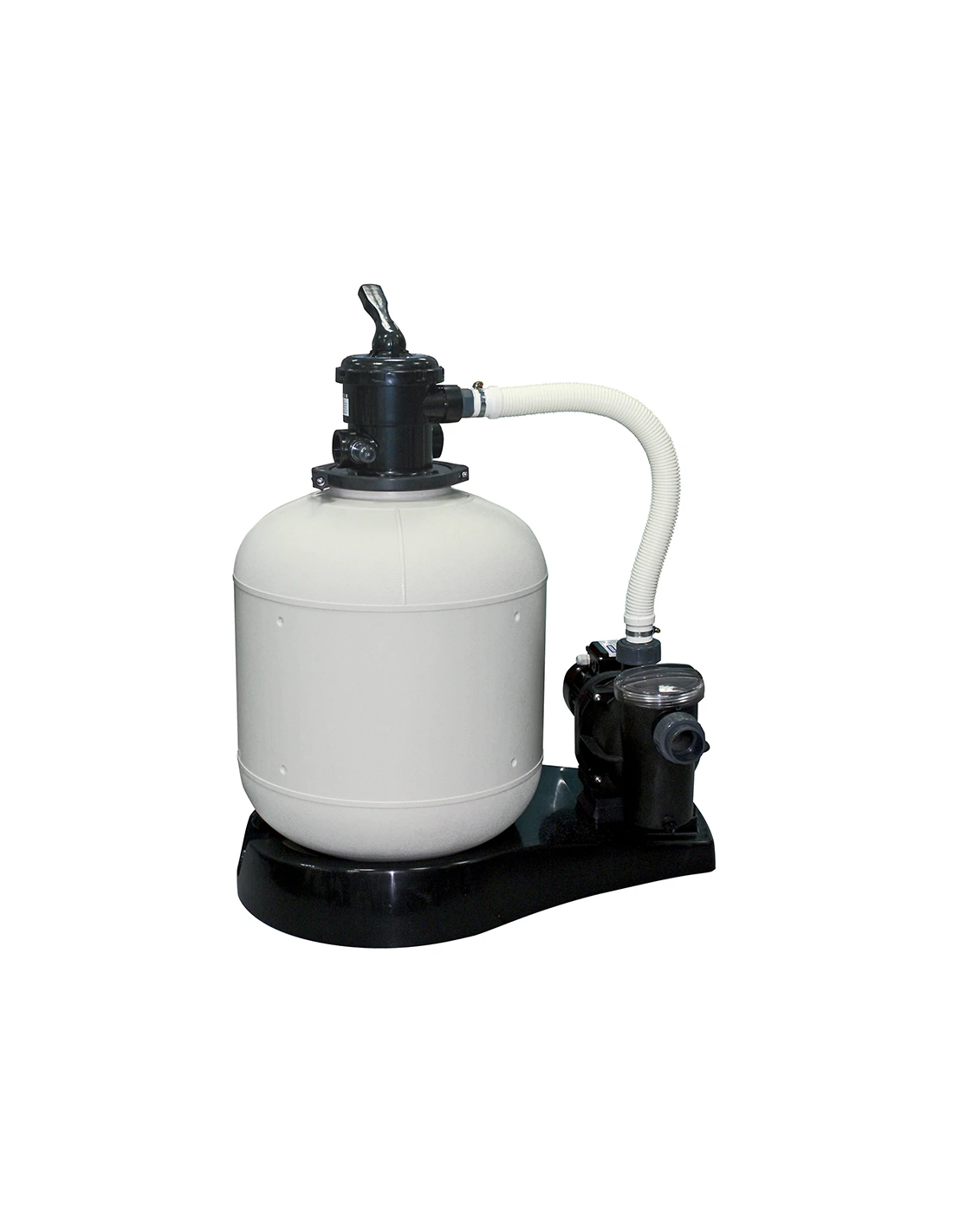 Avec sa pompe équipée d’un pré-filtre, la filtration de votre piscine devient de plus en plus performante et vous offre de bons résultats. la pompe avec le filtre à sable sont fixés sur un socle, et reliés entre eux par le kit de connexion.