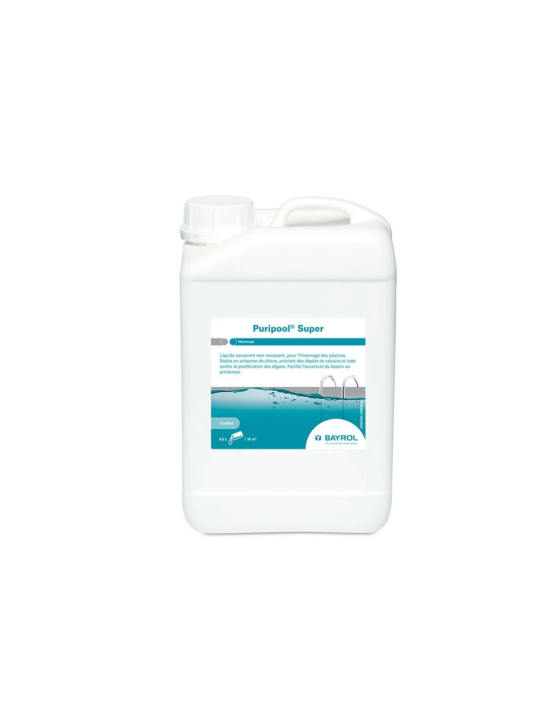 Pluripool Super est un liquide concentré non moussant, idéal pour le traitement de l’eau des piscines extérieures pendant l’hivernage.