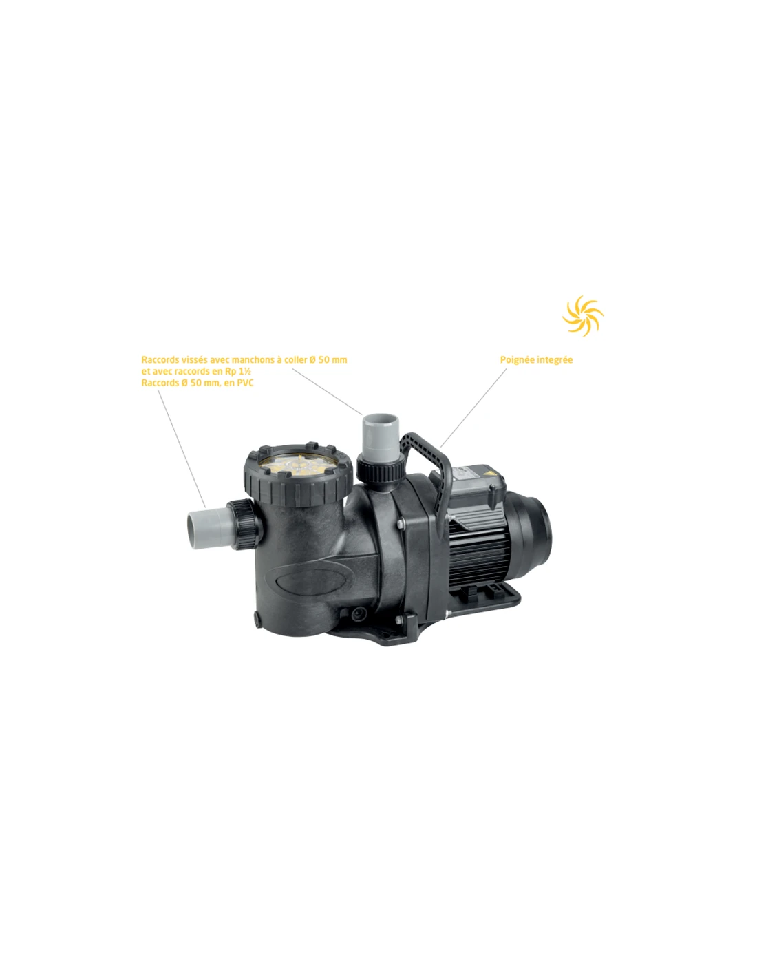 Cette pompe est également compatible avec eau salée à concentration maximum de 0.5% soit 5g de sel/l. L’installation de la pompe Badu SuperPro est relativement simple grâce à son format ergonomique et ses raccords adaptables. Ce modèle comprend un système fonctionnel de 4 boulons avec une poignée intégrée pour le transport et l’installation. Le couvercle transparent a été imaginé afin que vous puissiez contrôler visuellement l’état de votre pompe en toute facilité. De plus, la pompe Badu SuperPro est conçue avec un moteur nouvelle génération silencieux rendant l’utilisation quotidienne de cet équipement agréable et confortable.