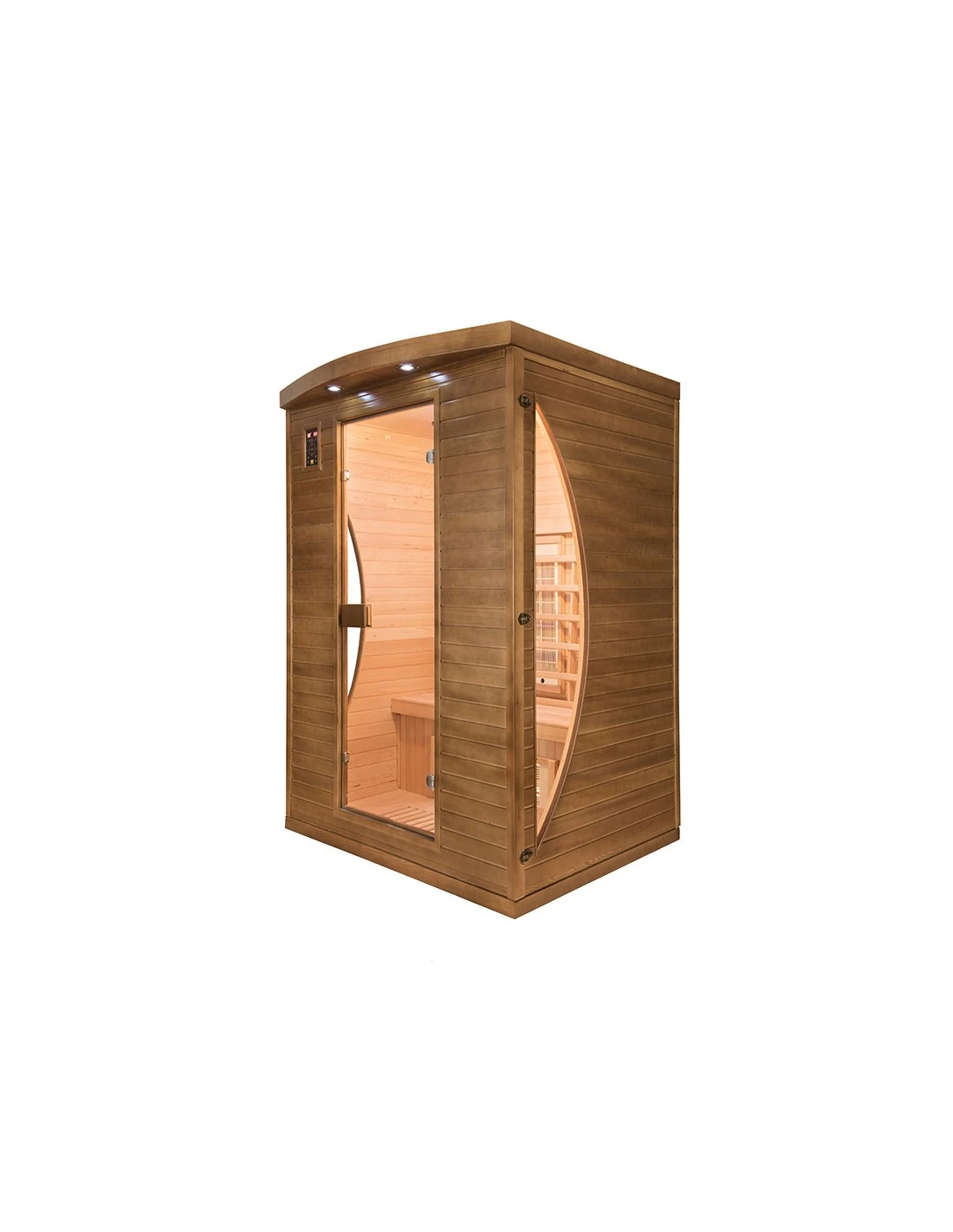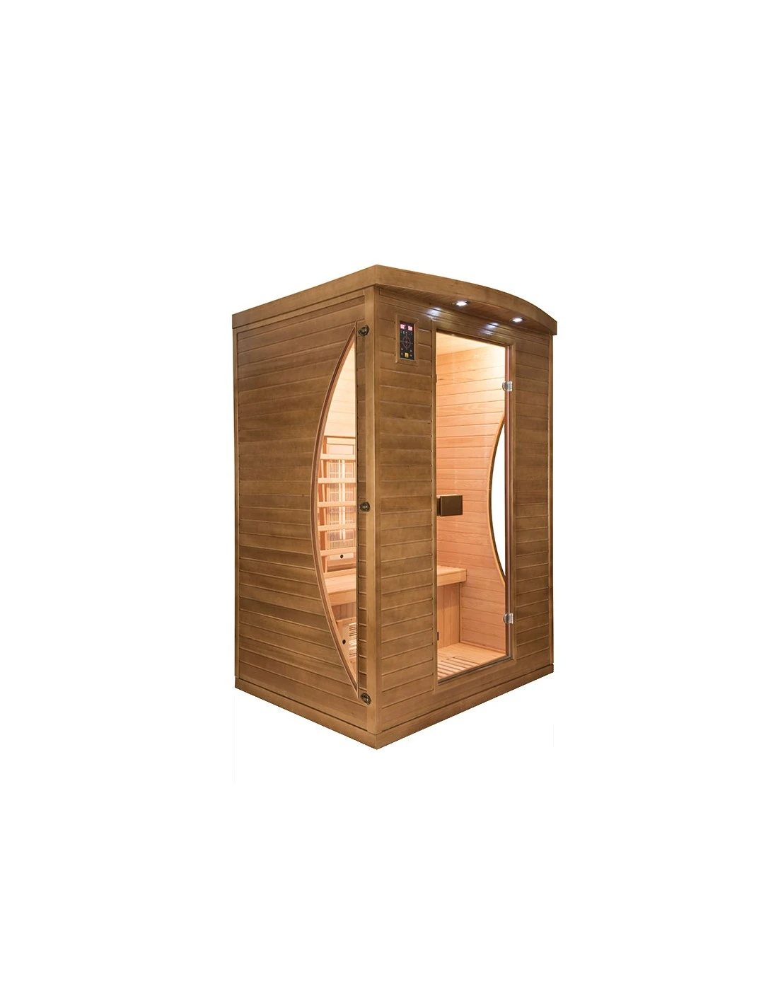 Conçu en véritable bois d’épicéa du Canada, ce sauna possède un design à la fois moderne et chaleureux.